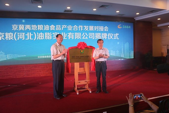 会上,河北省粮食局局长张宇和北京市粮食局局长李广禄为京粮(河北)油脂实业有限公司揭牌。该公司是冀粮集团以所属全省产业链最长、设施最完善、规模最大的国有专业化油脂储备库实物资产出资,京粮集团以自有资金出资设立的新合资公司,标志着京冀粮油食品产业一体化发展取得新的实质性进展。该公司将以油脂采购、加工、销售为核心主业,充分发挥双方“古船”“绿宝”、“天益”、“佳益”等品牌优势,搞好资源协同,做实油脂产业,加快培育成为区域油脂产业领军企业。